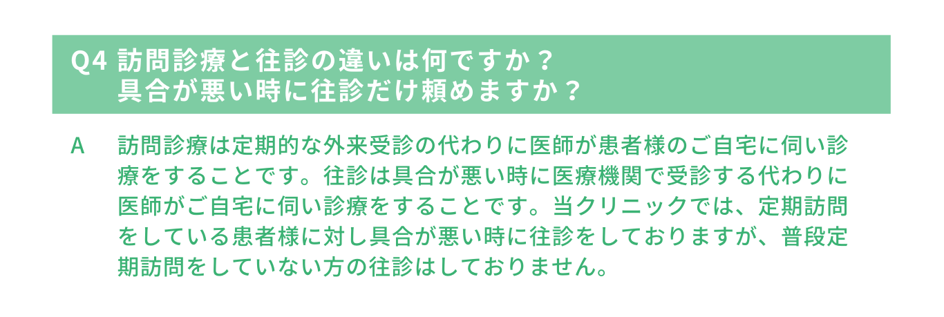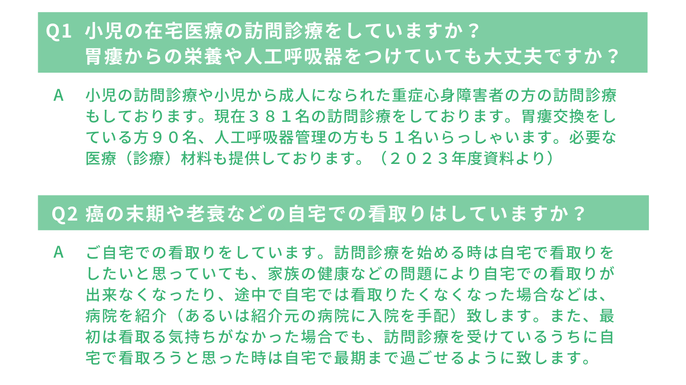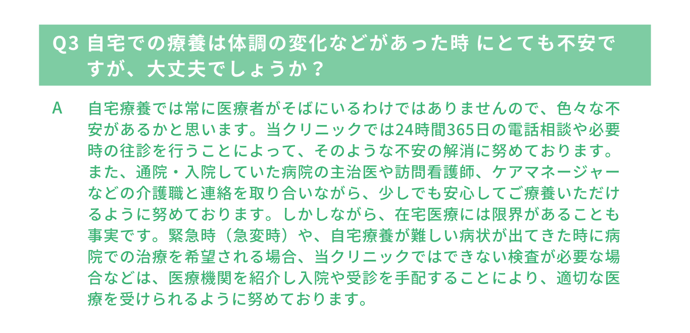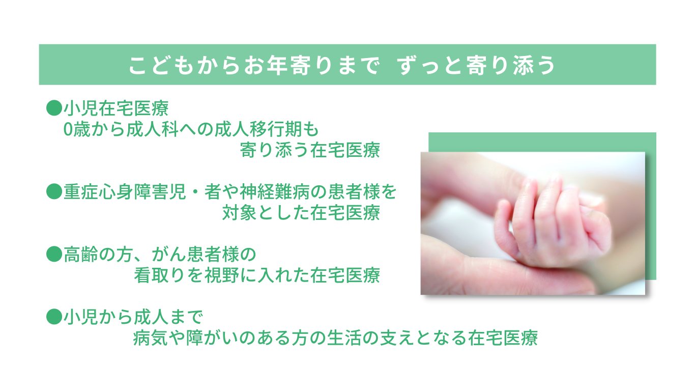 訪問診療を検討されている方や患者様の紹介を検討されている医療機関や地域事業所の方は、【訪問診療について】のページをご覧ください。