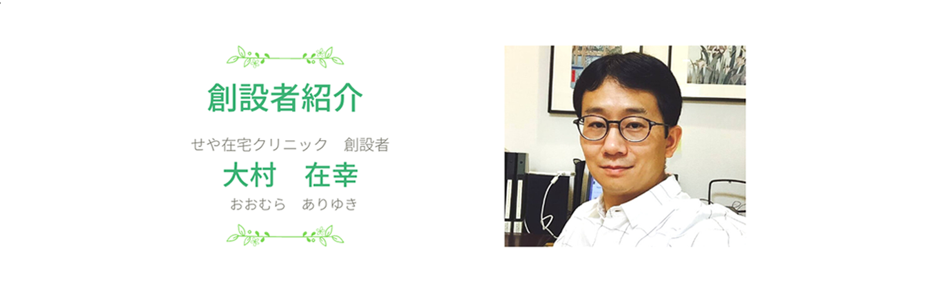 せや在宅クリニックは、こどもからお年寄りまで病気や障がいのために在宅医療が必要な方のかかりつけ医として、ご自宅に訪問し医療を提供することを理念としています。